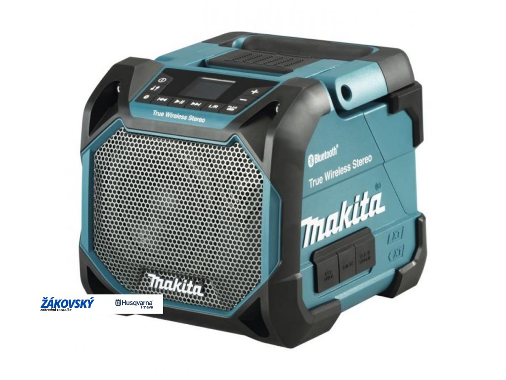 - Bluetooth reproduktor pre použitie s Li-ion batériami Makita (10,8-18V), alebo s dodávaným sieťovým adaptérom.