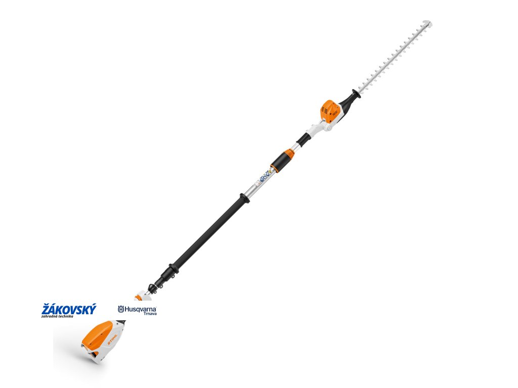 Akumulátorové zahradné nnožnice na živý plot pre profesionálne nasadenie pri údržbe vysokých a širokých živých plotov. Konštantný zdvih nožov pri zaťaži, sklopné, ideálne nastaviteľné pre strihanie nad hlavou, zo strany a od zeme, o 115° nastaviteľná nožová lišta, veľký dosah, obojstranne brúsené nože, prepravná dĺžka 180 cm, celková dĺžka 330 cm, hmotnosť 4,8 kg.Dodávané bez akumulátora a bez nabíjačky.Dodatočné parametre