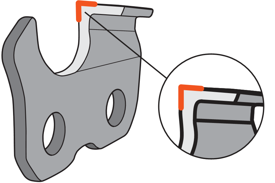 ● Polosek (semi chisel) – zuby majú zaoblené hrany. Režú pomalšie, ale vydržia dlhšie ostré a lepšie znášajú, keď sa do rezu dostane prach alebo piesok. To je ideálna voľba na mäkšie drevo alebo ak pracujete vonku, kde nie je vždy čistý povrch.