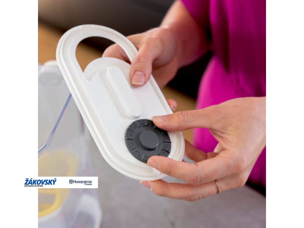 | Feature 5 - Benefit 1: | Kanvica sa ľahko plní, tesne priliehajúce veko sa magneticky zacvakne do správnej polohy a nie je potrebné ho držať otvorené rukou. |