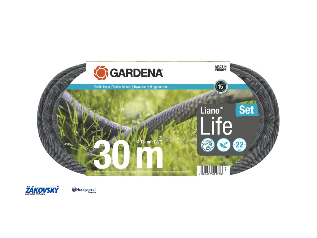 Textilná hadica Liano™ Life je 30 m dlhá a má priemer 13 mm (1/2"). Spoľahlivý všestranný pomocník je ideálny pre krátkodobé až stredne dlhé zavlažovanie vo veľkých záhradách.