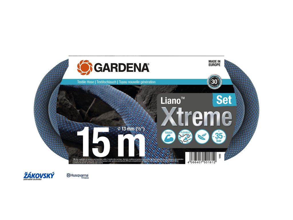 Liano™ Xtreme vydrží tlak až 35 barov, pri ktorom dôjde k jej prasknutiu. Či je zima alebo svieti slnko – vďaka odolnosti voči mrazu a UV žiareniu môže zostať na záhrade po celý rok. Neobsahuje škodlivé látky ani ftaláty (<0,1 %), kadmium, olovo a bárium (<0,1 %).