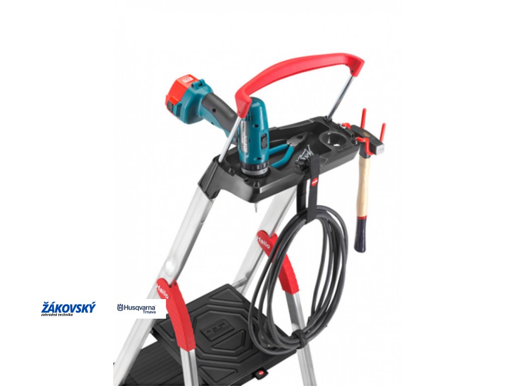 Schodíky jednostranné hliníkové Topline L100 s multifunkčnou priehradkou, bezpečnostným držadlom a zaistením plošiny. Počet nášľapov vrát. plošinky 1x5.- multifunkčná priehradka k odkladaniu náradia, plechoviek s farbou alebo drobných dielov- pútko na vedro s rýchlouzáverom na bezpečné upevnenie vedier, vysávačov či káblových navijakov a háky na zavesenie drobného náradia- hliníkové schody s protišmykovým drážkovaním a šírkou až 13 cm- pozinkovaná oceľová plošina s protišmykovým drážkovaním- protišmyková nasadzovacia pätka- výsuvné bezpečnostné držadlo pre väčšiu stabilitu a bezpečnosť- zaisťovací systém plošiny pre bezpečné zaistenie a odistenie schodíkovMožnosť použitia na domáce i profesionálne účely.Dodatočné parametre