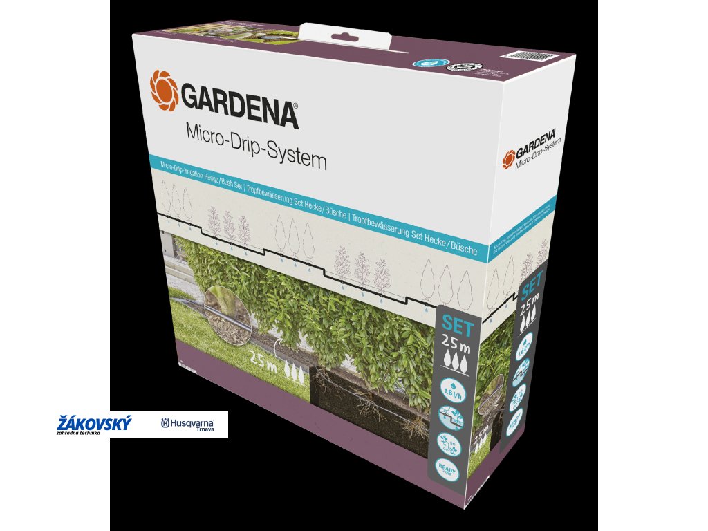 Súprava je ideálna pre úsporné kvapkové zavlažovanie rastlín v riadkoch, ako sú živé ploty a kríky až do dĺžky 25 m.