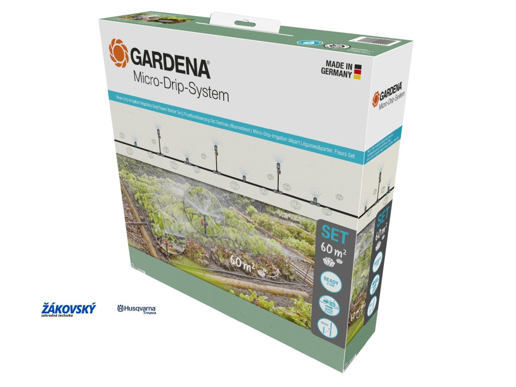 Súprava sa ideálne hodí na úsporné zavlažovanie zeleninových a kvetinových záhonov s plochou až 40 m². Vďaka plošným rozprašovacím tryskám s jemným postrekom je zavlažovanie rovnomerné.