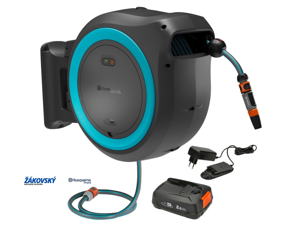 - Rozsah dodávky: 1 x akumulátorový nástenný box GARDENA PowerRoll XXL, súprava pripravená na použitie vrátane 1 x 40 m kvalitnej hadice 13 mm (1/2"), 1 x pripojovacej hadice, 1 x originálnych dielov systému GARDENA (prípojka na vodovodný kohútik, hadicová prípojka, uzáver vody), 1 x čistiacej pištole, 1 x nástenného držiaka so skrutkami, hmoždinkami a montážnou pomôckou, 1 x systémovej batérie P4A PBA 18V/45 vrátane nabíjačky P4A AL 1810 CV