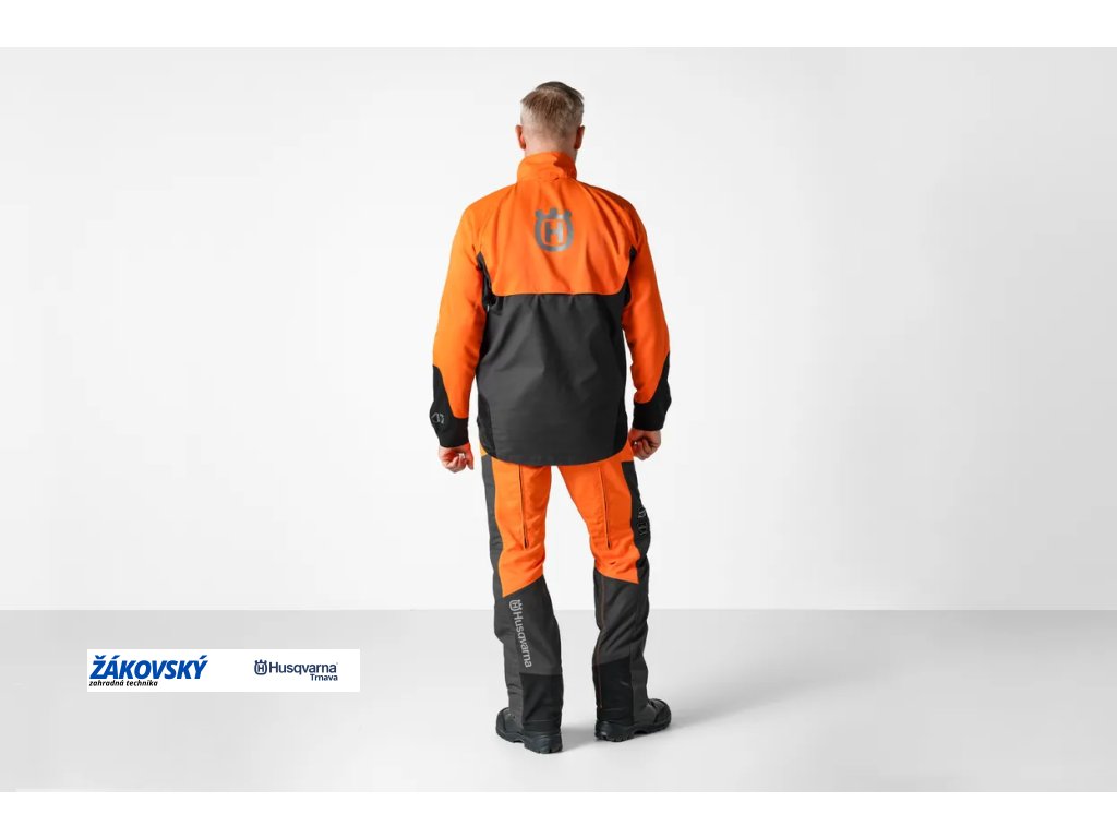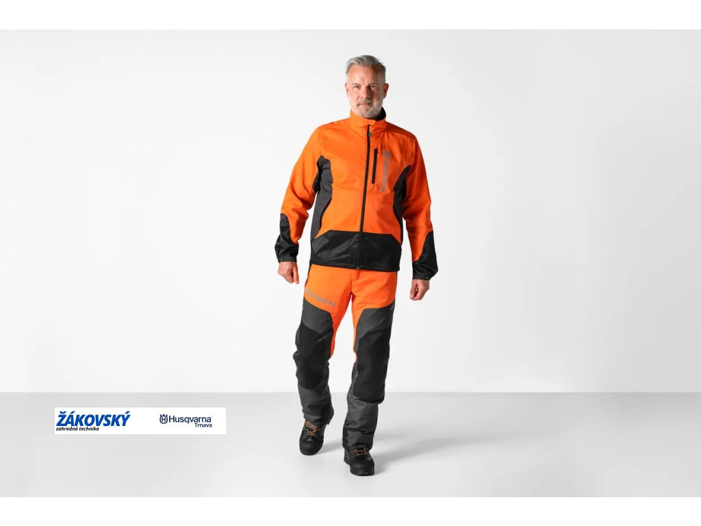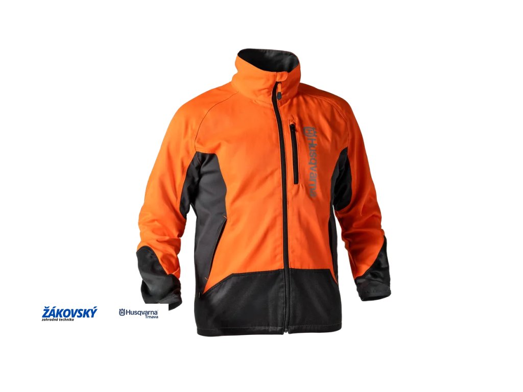 Moderne strihaná bunda s kvalitne spracovanými detailmi. Vrecko na hrudi a dve bočné vrecká na zips. Gombíky na konci rukávov pre stiahnutie. Veľké reflexné logo Husqvarna na hrudi. Jasne oranžová farba materiálu v horných partiách zaisťuje výbornú viditeľnosť v horších svetelných podmienkach.