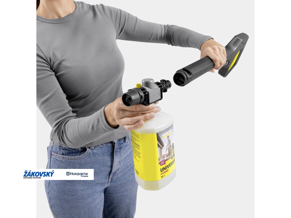 | Feature 3 - Benefit 2: | Čistiaci prostriedok je možné dávkovať pomocou zariadenia a nadstavca Multi Jet alebo, pre viac peny, pomocou penovacej trysky vrátane dávkovania čistiaceho prostriedku. |