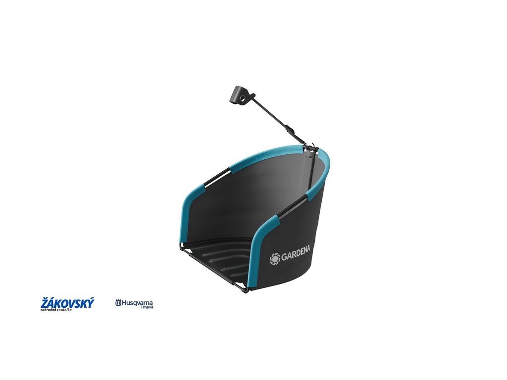 Keď sa kôš nepoužíva, dá sa zložiť, aby bol kompaktný a ľahko skladovateľný. Integrovaný háčik na rukoväti umožňuje bezpečné pripevnenie zberného koša k kosačke
