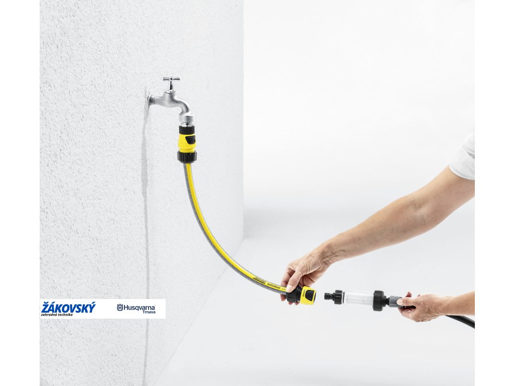 Časticový filter chráni Kärcher Rain System® pred čiastočkami špiny. Filter sa pripája na koniec prívodnej hadice pri prechode na Kärcher Rain System®. Filtračná vložka sa dá kedykoľvek bez problémov vybrať a vyčistiť. Na vstupnej strane sa nachádza prípojka na vodovodný kohútik, ktorá je kompatibilná so všetkými známymi klik systémami. Na výstupnej strane je prípojka pre hadicu Kärcher Rain System® alebo kvapkaciu hadicu. Hadice sa jednoducho priamo nasúvajú alebo sa bez náradia montujú pomocou prevlečnej matice. Efektívny zavlažovací systém Kärcher Rain System® v sebe spája výhody mikro-kvapkania a bežného zavlažovania. Systém pracuje s tlakom do 4 bar, dá sa individuálne prispôsobiť takmer každému typu záhrady a perfektne spolupracuje so zariadením SensoTimer pre zavlažovanie podľa potreby.Dodatočné parametre